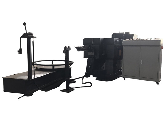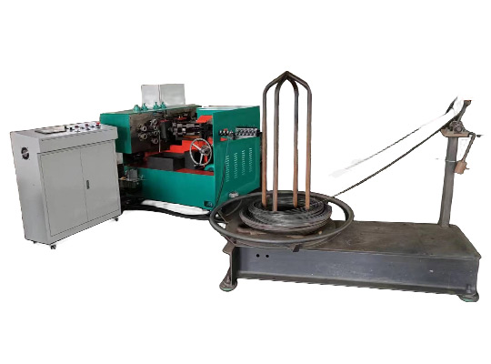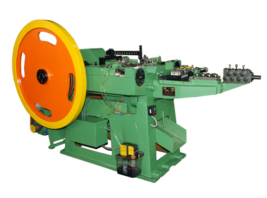 把絲拉好以后,通過全自動送線機頭,然后把拉好的絲送線機頭里面,生產出調好的半成品的釘子。
